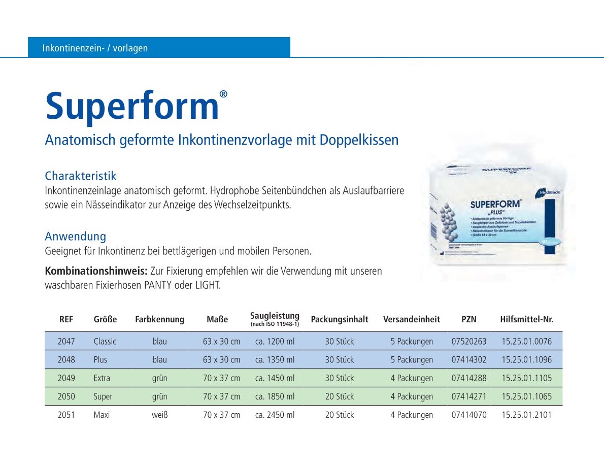 Superform® Classic, Inkontinenzvorlage