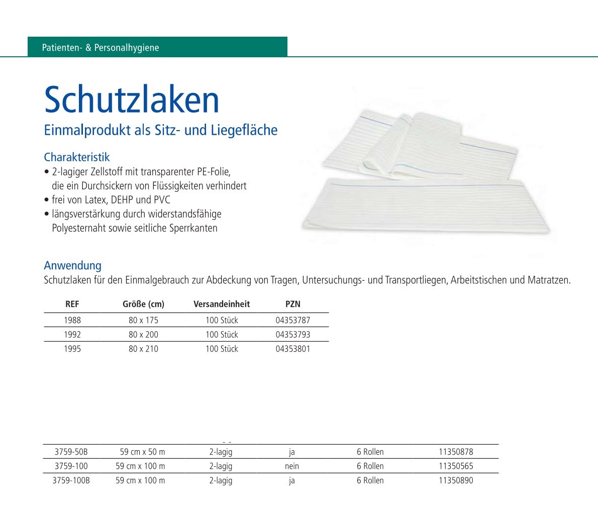 Schutzlaken 80 x 200 cm, mit seitlichen Sperrkanten