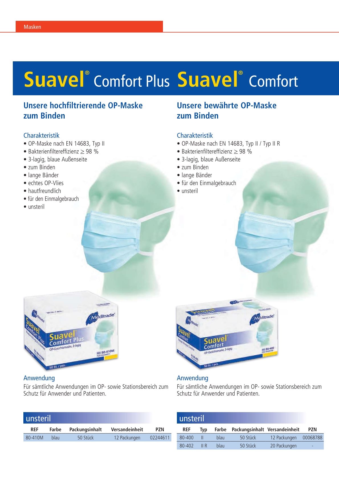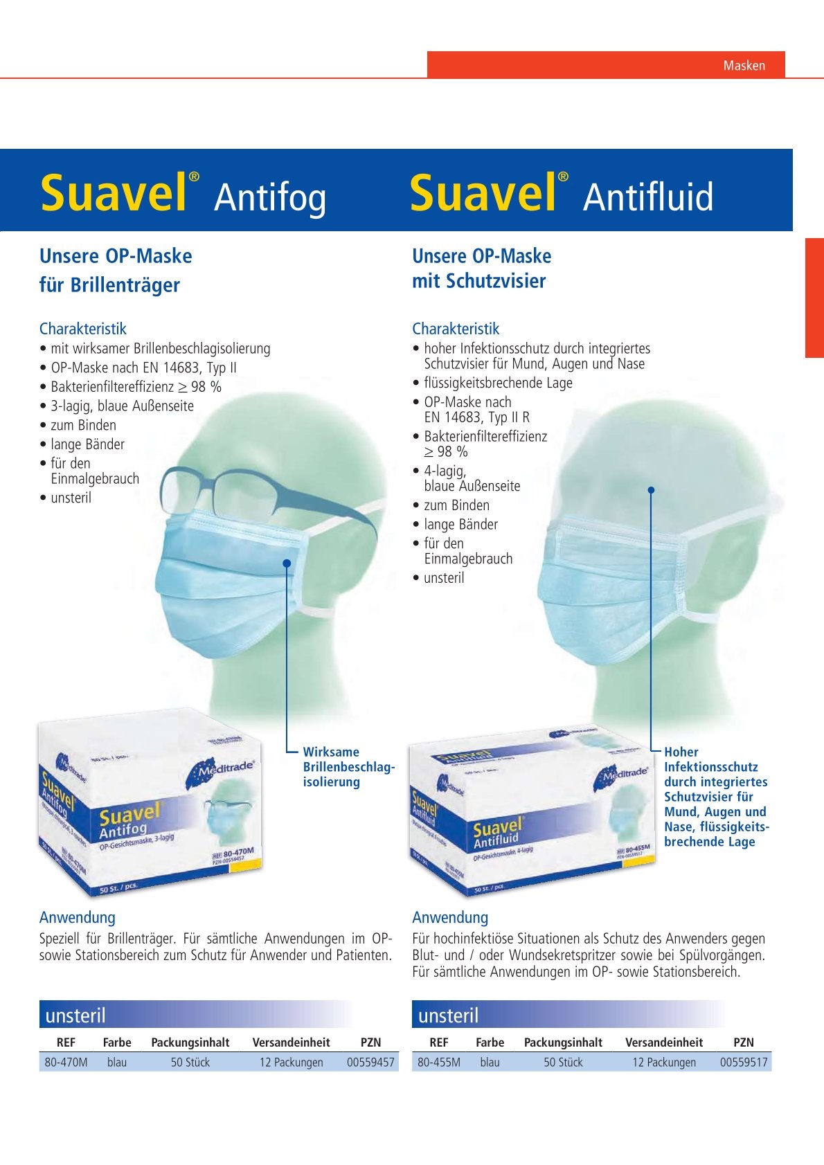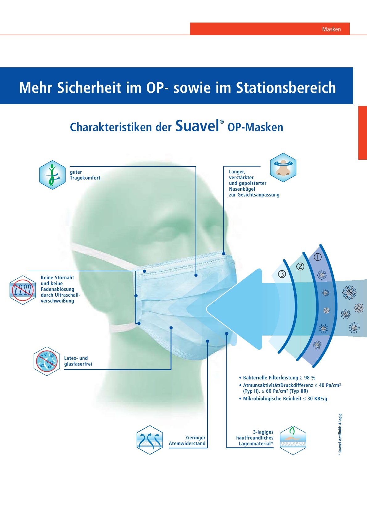 Suavel Antifog OP-Maske für Brillenträger, Bänder, Typ II, blau