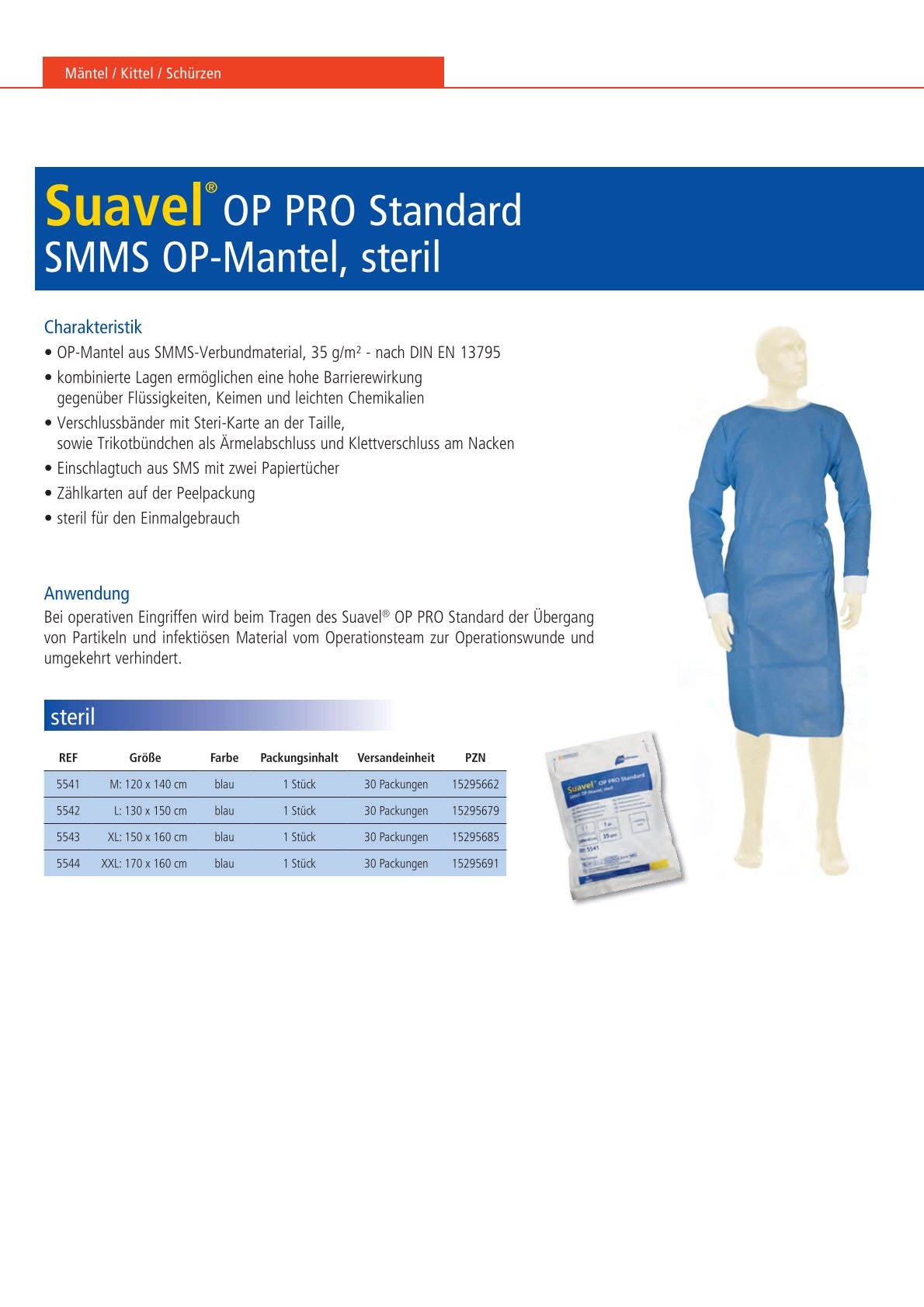 Suavel OP PRO Standard, M SMMS OP-Mantel, steril, 120x140 cm, 35g, blau