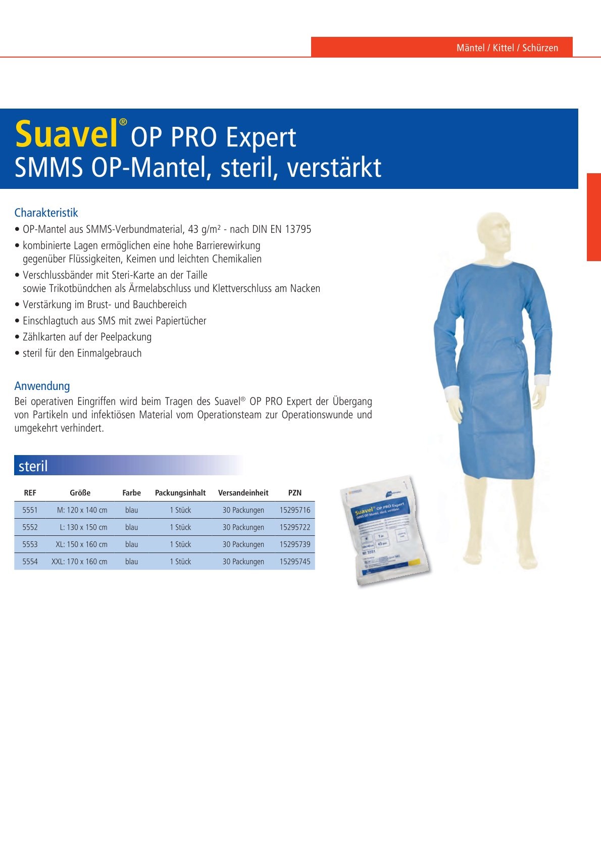 Suavel OP PRO Expert, M SMMS OP-Mantel, steril, verstärkt, 120x140 cm, 43g, blau