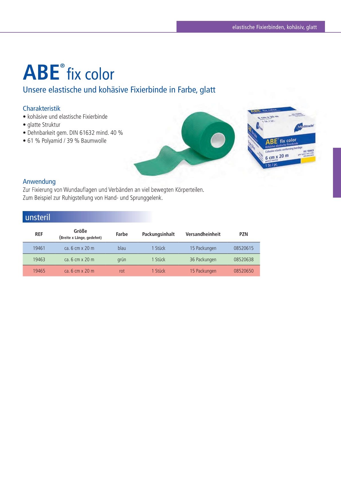 ABE® fix color hochelastische Fixierbinde, 6 cm x 20 m, grün