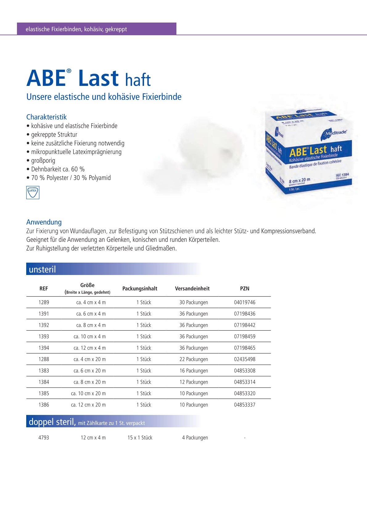 ABE Last® haft doppelt steril Haft Set, hochelastische Fixierbinde +