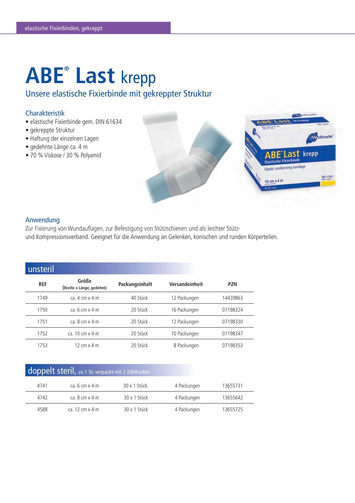 ABE Last® krepp doppelt steril elastische Fixierbinde, doppelt steril, 10 cm x 4 m