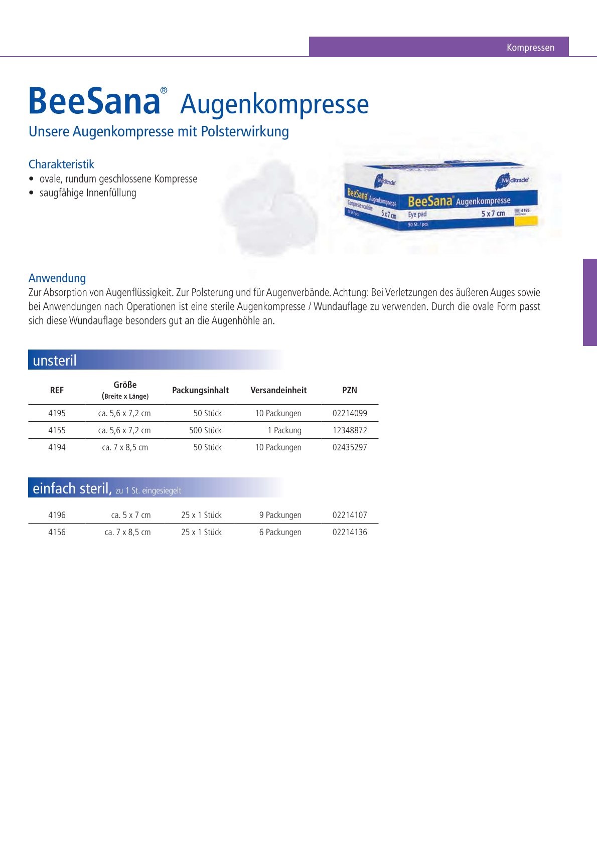 BeeSana® Augenkompresse unsteril, 5x7 cm