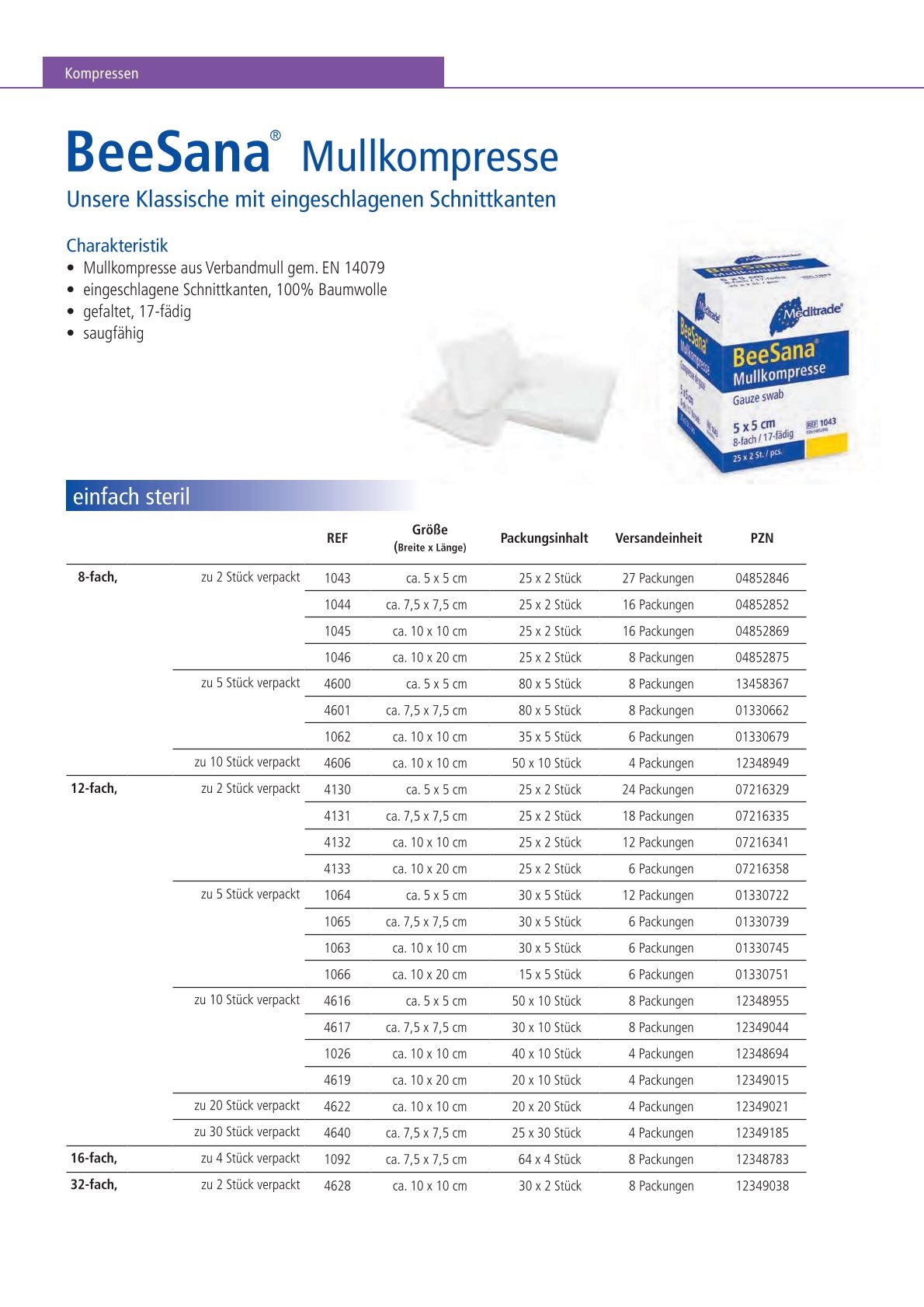 BeeSana® Mullkompresse ohne RöKo, steril, 12-fach, 7,5 x 7,5 cm( 30x5 Stück)