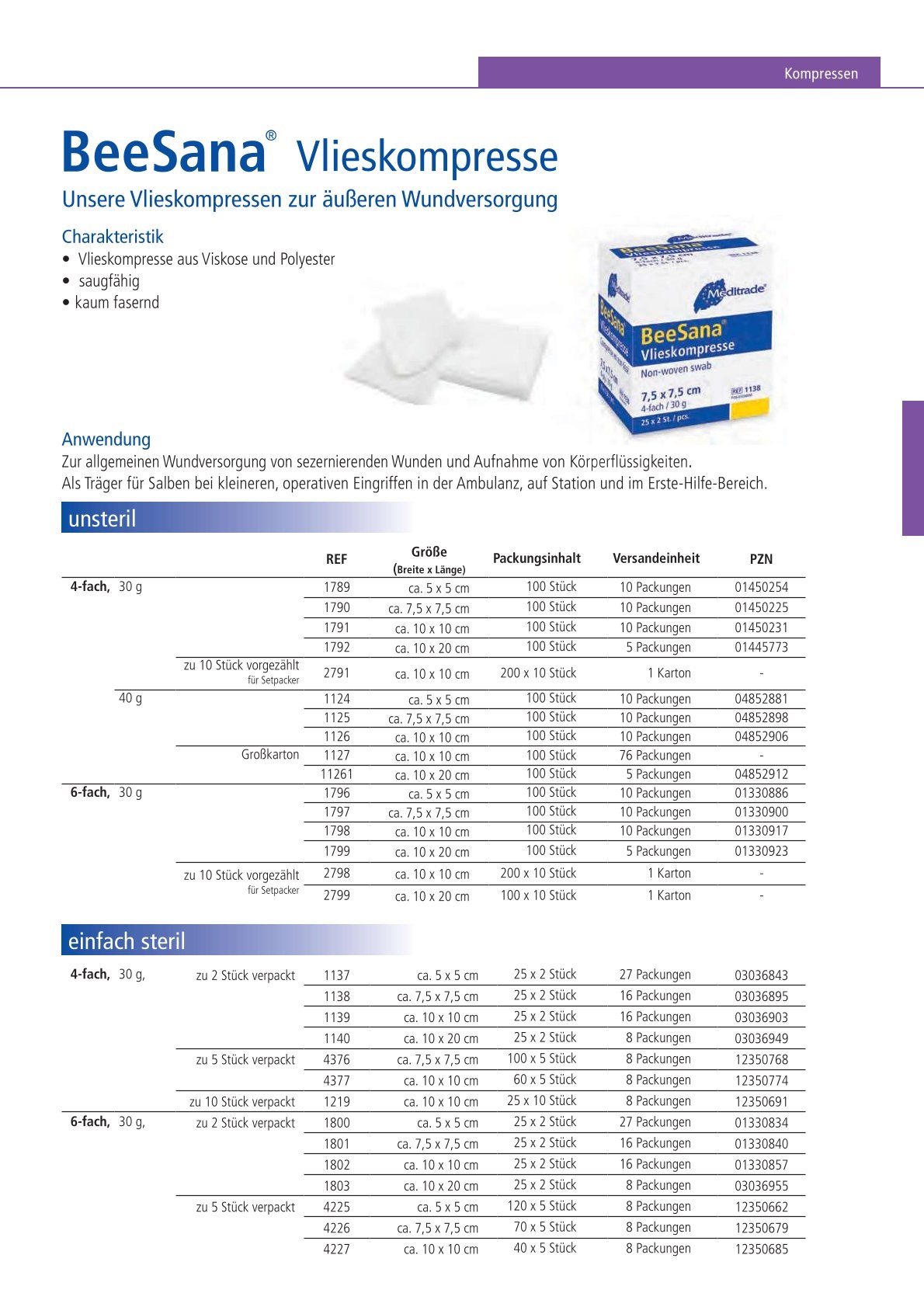 BeeSana® Vlieskompresse unsteril, 4-fach, 40 g, 5 x 5 cm