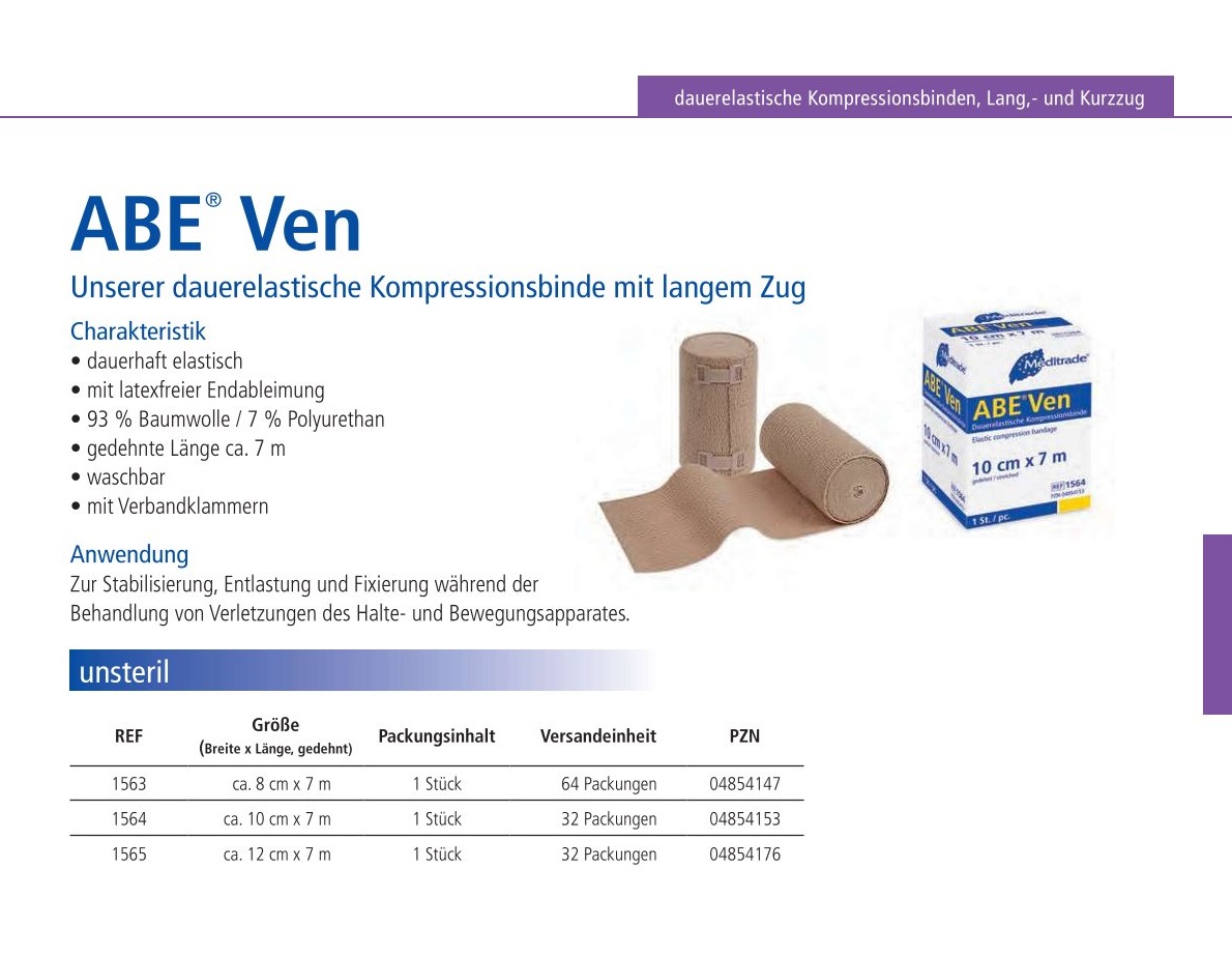 ABE Ven® kräftig Dauerelastische Langzugbinde, 10 cm x 7 m