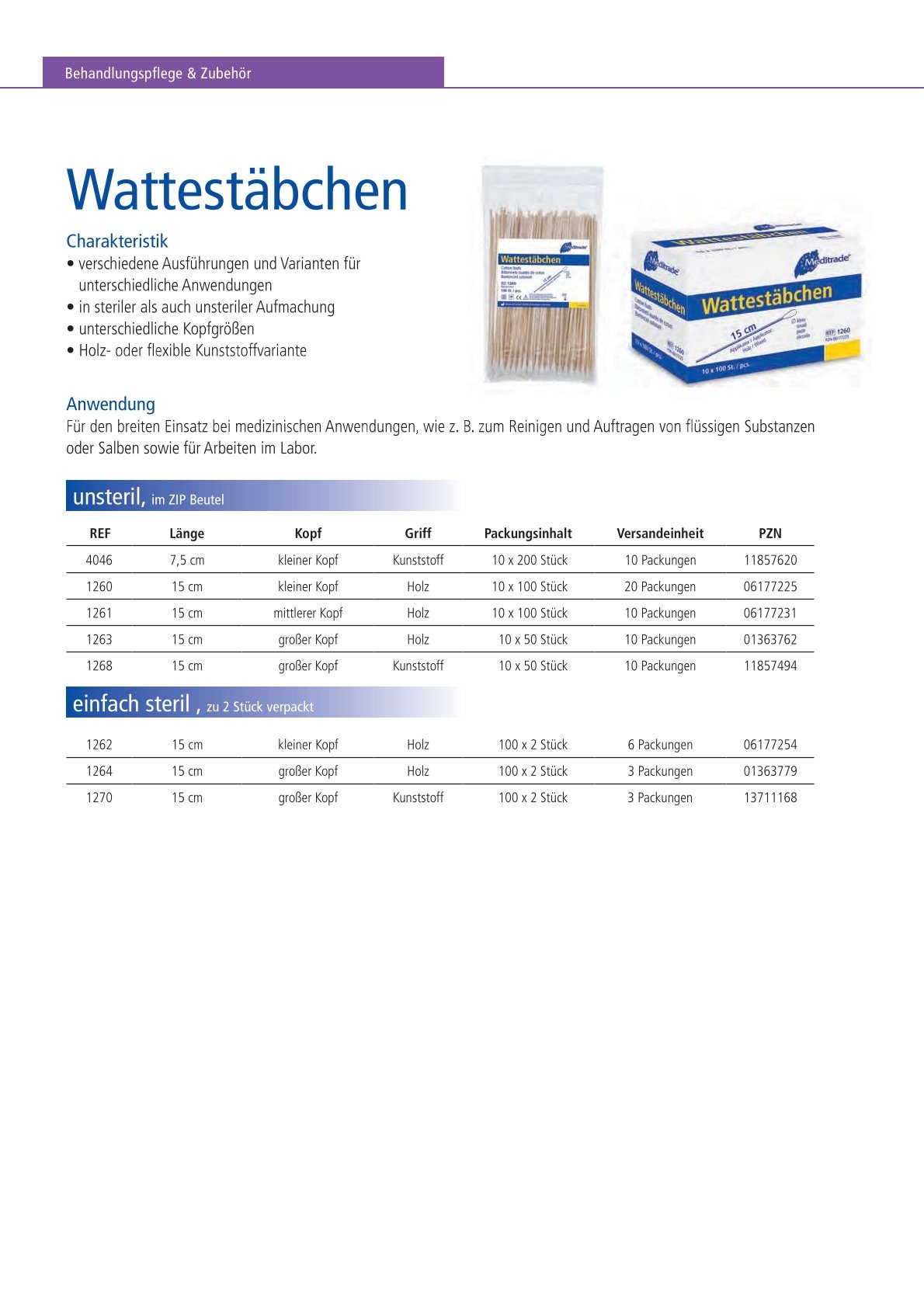 Wattestäbchen Länge: 15 cm, mittlerer Kopf, Holz, unsteril