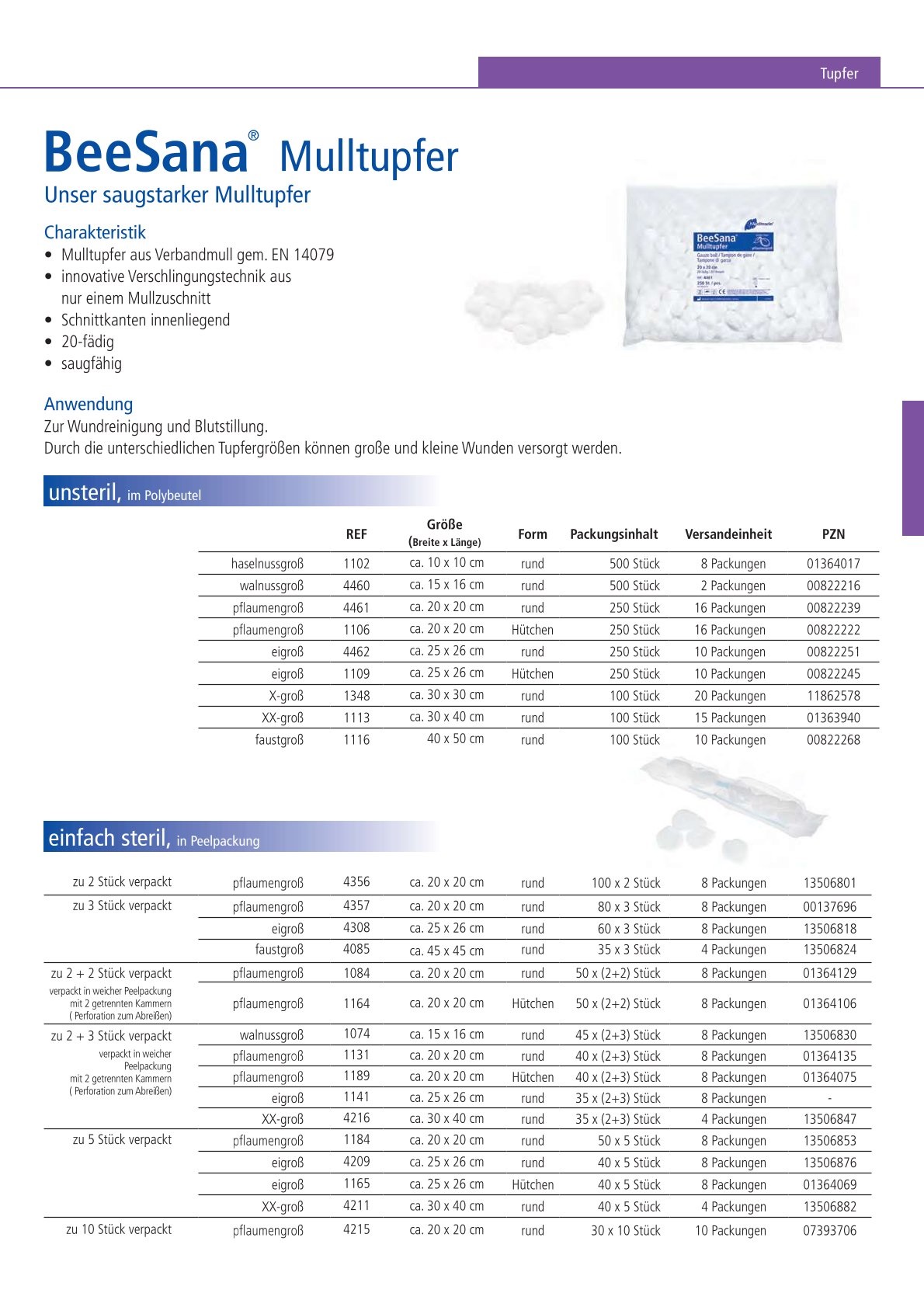 BeeSana Mulltupfer steril ohne RöKo, steril, 25 x 26 cm