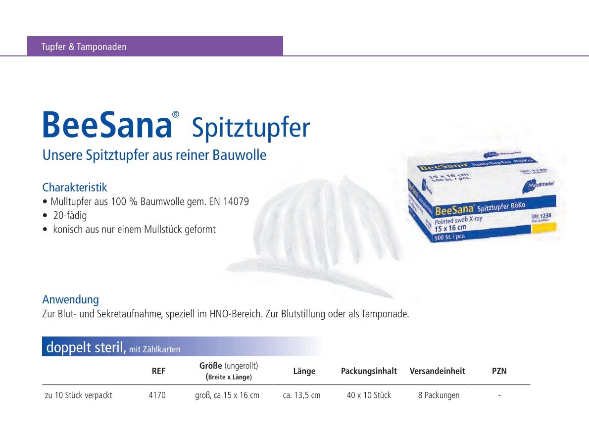 BeeSana Spitztupfer groß, ohne RöKo, ca.15 x 16 cm doppelt steril,