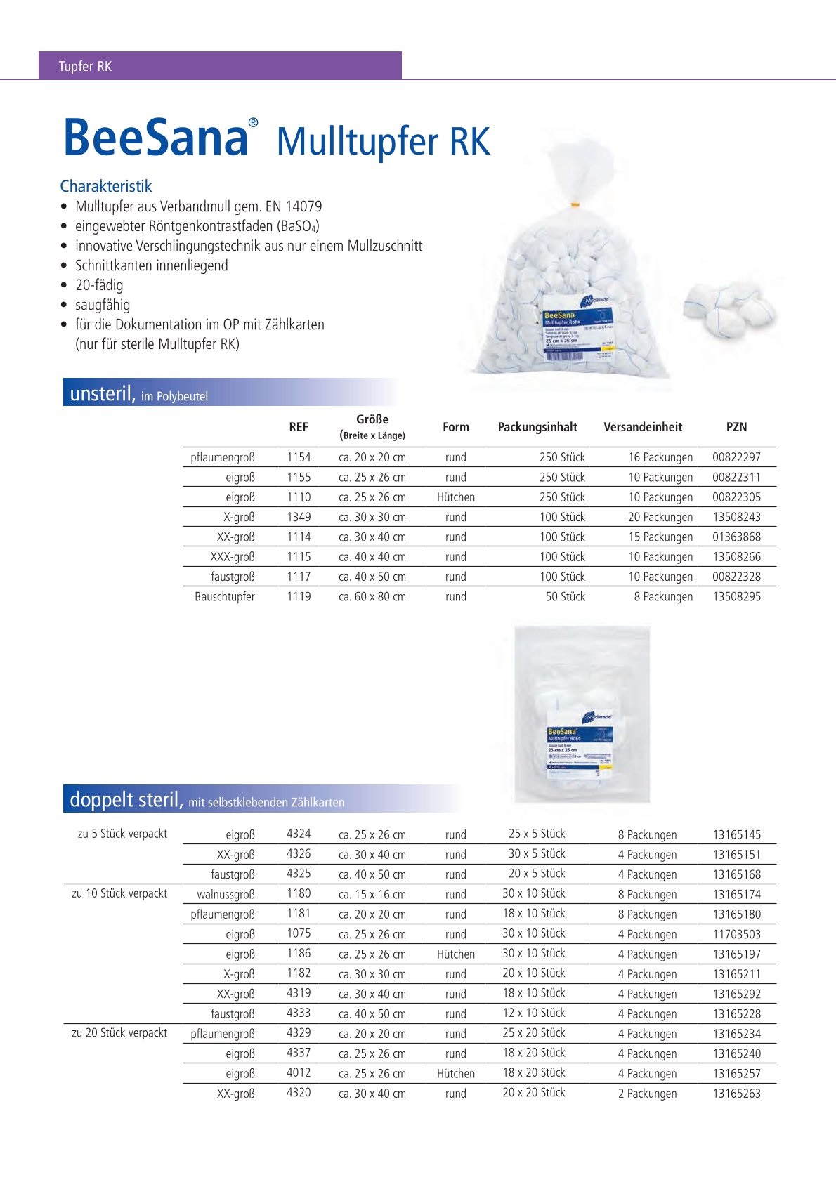 BeeSana® Mulltupfer RK mit RöKo, doppelt steril, 20 x 20 cm, pflaumengroß, Rundform